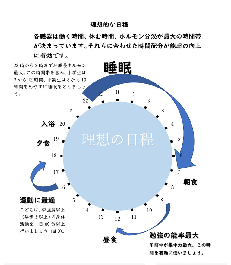 実は、私たちの体は「朝に活動できるように」前日の夜から少しずつ準備を始めています。だからこそ、生活リズムを整えることは、自分の持っている力を100%発揮するために、とても大切なのです。